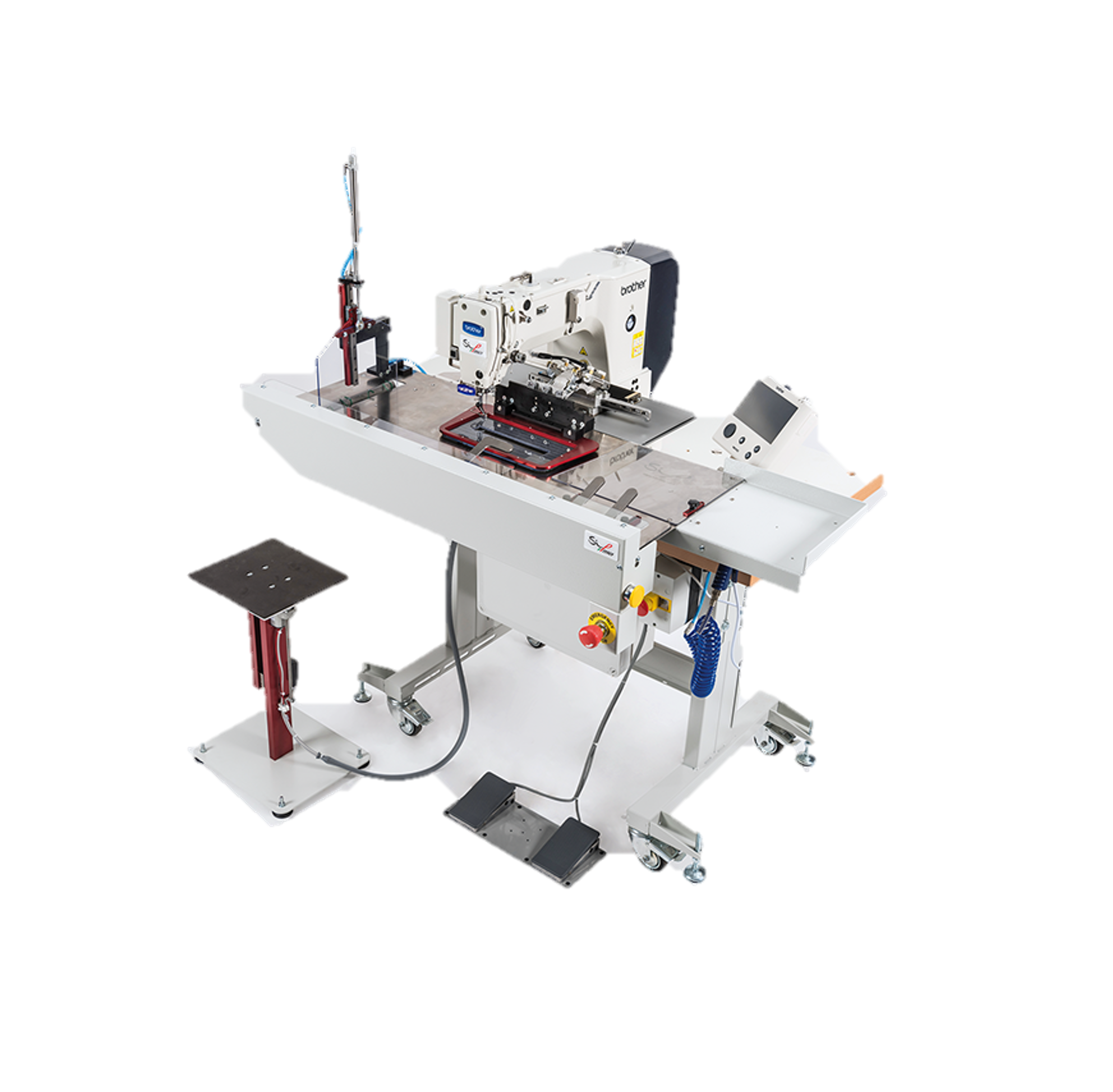 Programmable Unit with A Working Area of 220 x 100 mm for Decorative Stitching Complete with a Special Attachment for Loading and Unloading Combined to a Stacker (Pockets Only). Average Production Approximately 240 pockets / hour